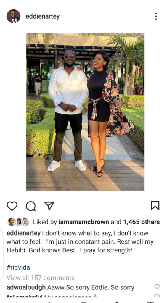 On Instagram, Actor Eddie Nartey shared the sad and disheartening news with a photo of Vida Obenewah to his huge fans and followers.