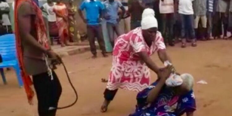 The late Akua Denteh in a viral video been beaten by colleague women who claimed she was a witch and was sitting on the progress of the youth in Kafaba.