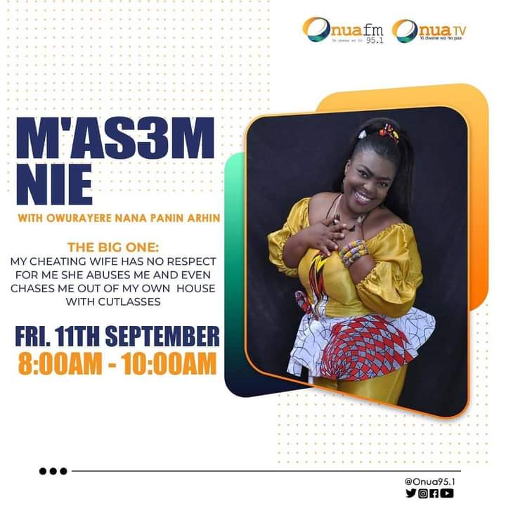 Meanwhile, ‘M’Asem Nie’ which was aired Friday morning from 8:00 am to 10:00 am dealt with individuals coming with their problems on abusive marriages cheating live on radio.