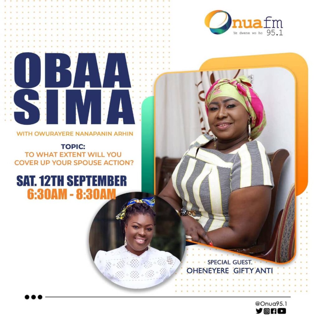During her stay at Onua 95.1 FM, she hosted two different programs, namely; ‘Obaasima’ and ‘M’Asem Nie’ respectively.