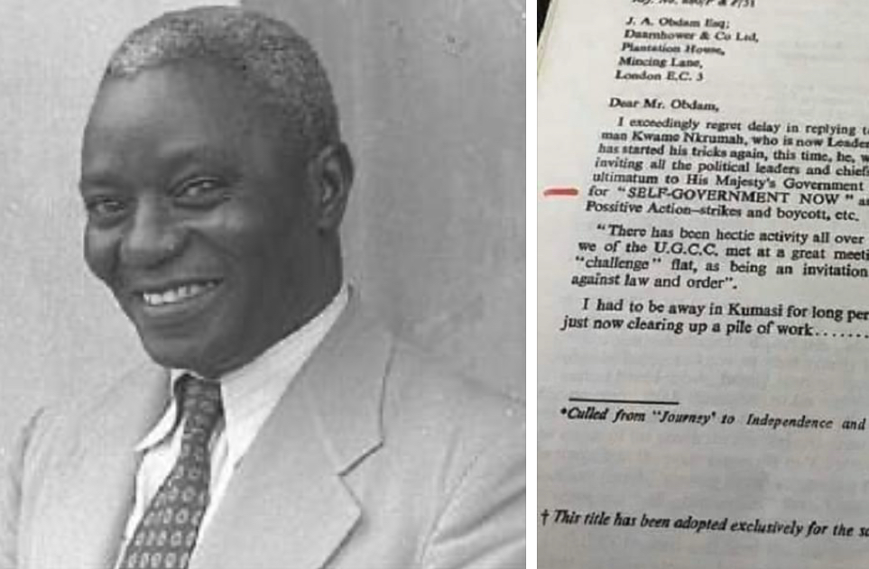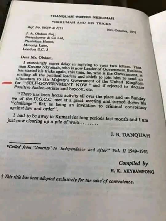 Digging into the archives, we have found a letter written by J.B. Danquah is said to be part of the people who championed Ghana’s independence alongside Dr. Nkrumah.