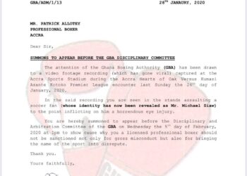 Read moreThe Ghana Boxing Authority (GBA) has summoned World Boxing Organisation (WBO) Africa Super Welterweight Champion, Patrick Allotey before its Disciplinary...