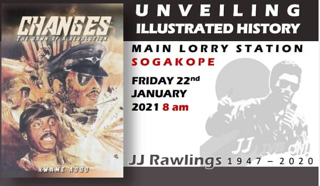 Human history before the invention of writing, has come down to us in the form of art work, for example the numerous prehistoric cave paintings and drawings that abound all over the world, testify to this fact. The illustrated book, Changes: The Dawn Of A Revolution, conveys a vivid impression of the legendary Flt. Lt. Jerry John Rawlings not only in the part he played in Ghana’s June 4th Revolution, but further engages our attention with background information which enhances his personality as a heroic figure.
