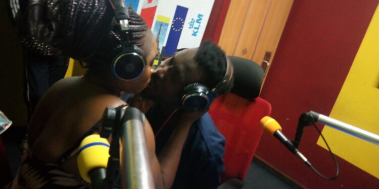 The two adults were reported to have kissed passionately to the amazement of the host Fiifi Pratt who couldn’t believe that his co-host Rita would do such a thing.