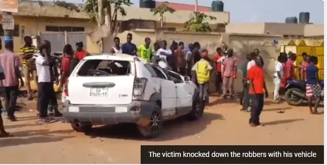 The victim identified as Junior was robbed by two armed men on a motorbike in his residence at Mr. Adjei at Taifa Burkina after he returned from the bank with some money.
