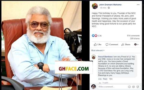 Ex-president John Mahama took to his official Facebook page to drop a powerful message to celebrate JJ Rawlings.