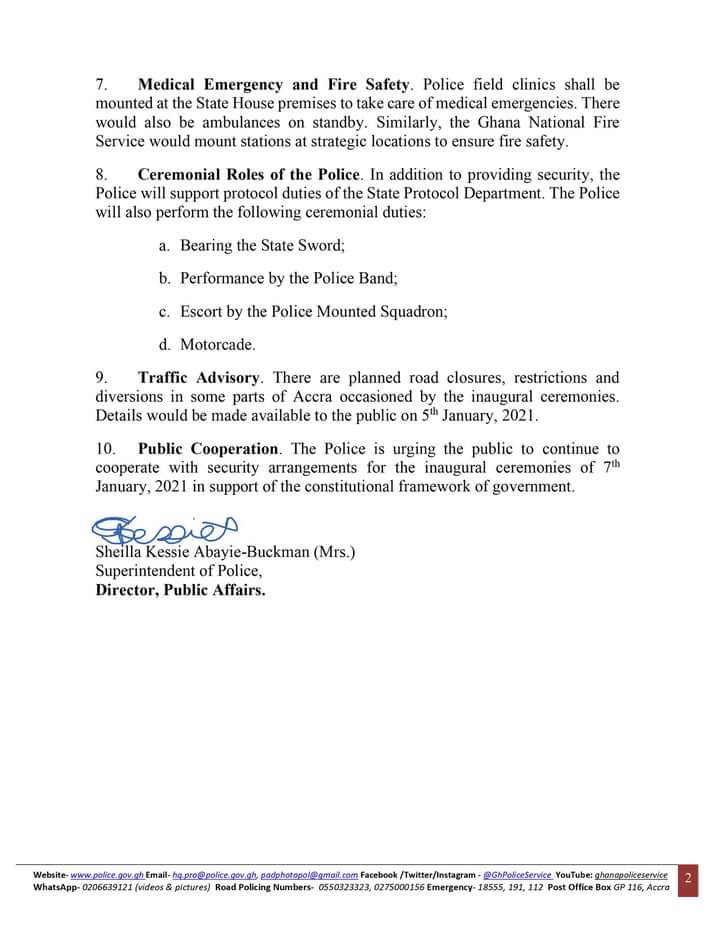 The Ghana Police Service says it will deploy 6000 security officials for the inauguration of President-elect Akufo-Addo on Thursday, January 7, 2021.