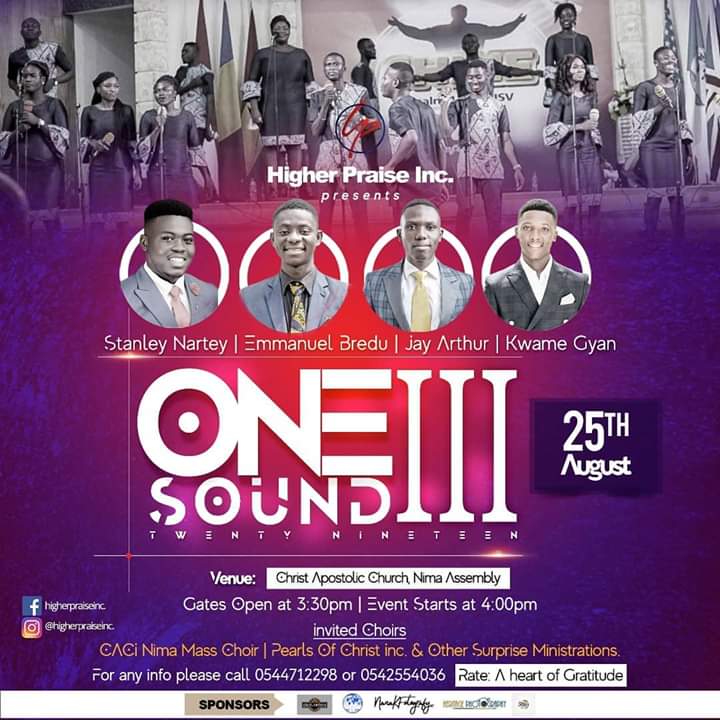 The expectations are already high as the Higher Praise Inc. organisers of the annual praise and worship program One Sound Concert, is poised for yet another edition of its flagship event scheduled to take place at the Christ Apostolic Church Int. Nima Assembly on Sunday, August 25, 2019.