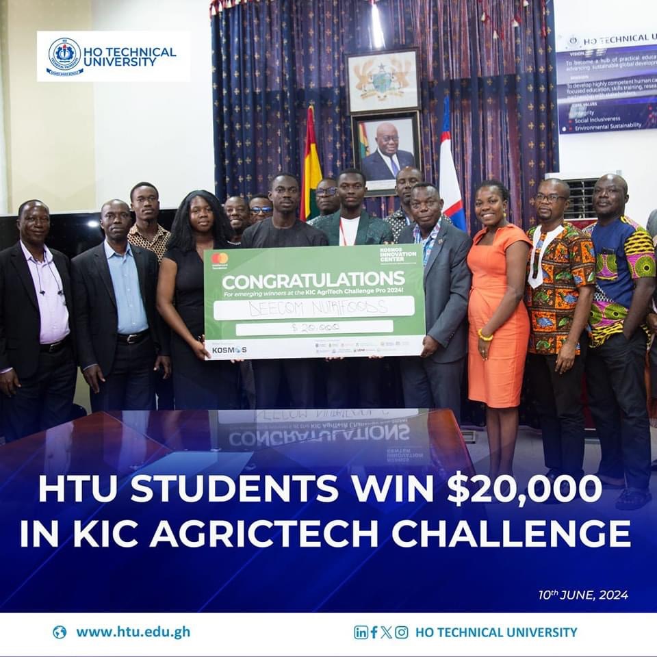 A team of three students from Ho Technical University (HTU) has won a cash prize of $20,000 in the KIC AgriTech Challenge – PRO. The students, who formed the business “DEECOM Nutrifoods Ltd.” developed a product called “Soysages,” an alternative protein made from soyabeans.