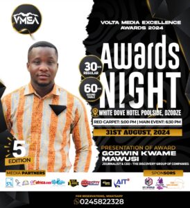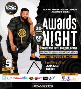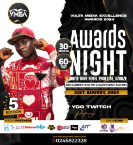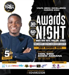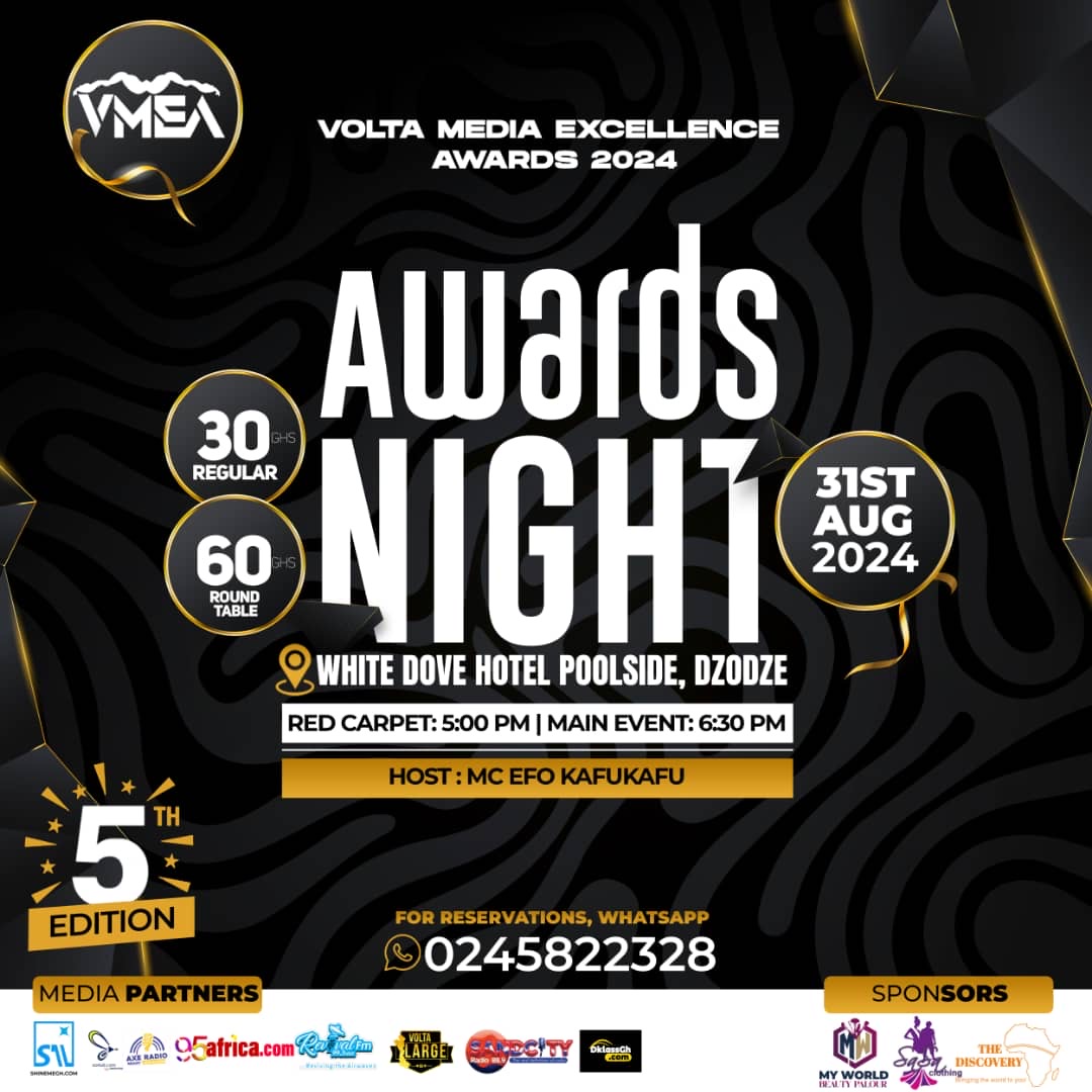 The 5th edition of the Volta Media Excellence Awards is scheduled for 31st August 2024. This year’s edition will be hosted by Dzodze in the Southern part of Volta Region at the White Dove Hotel.