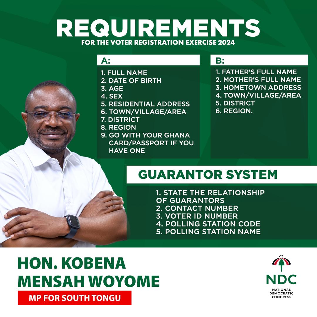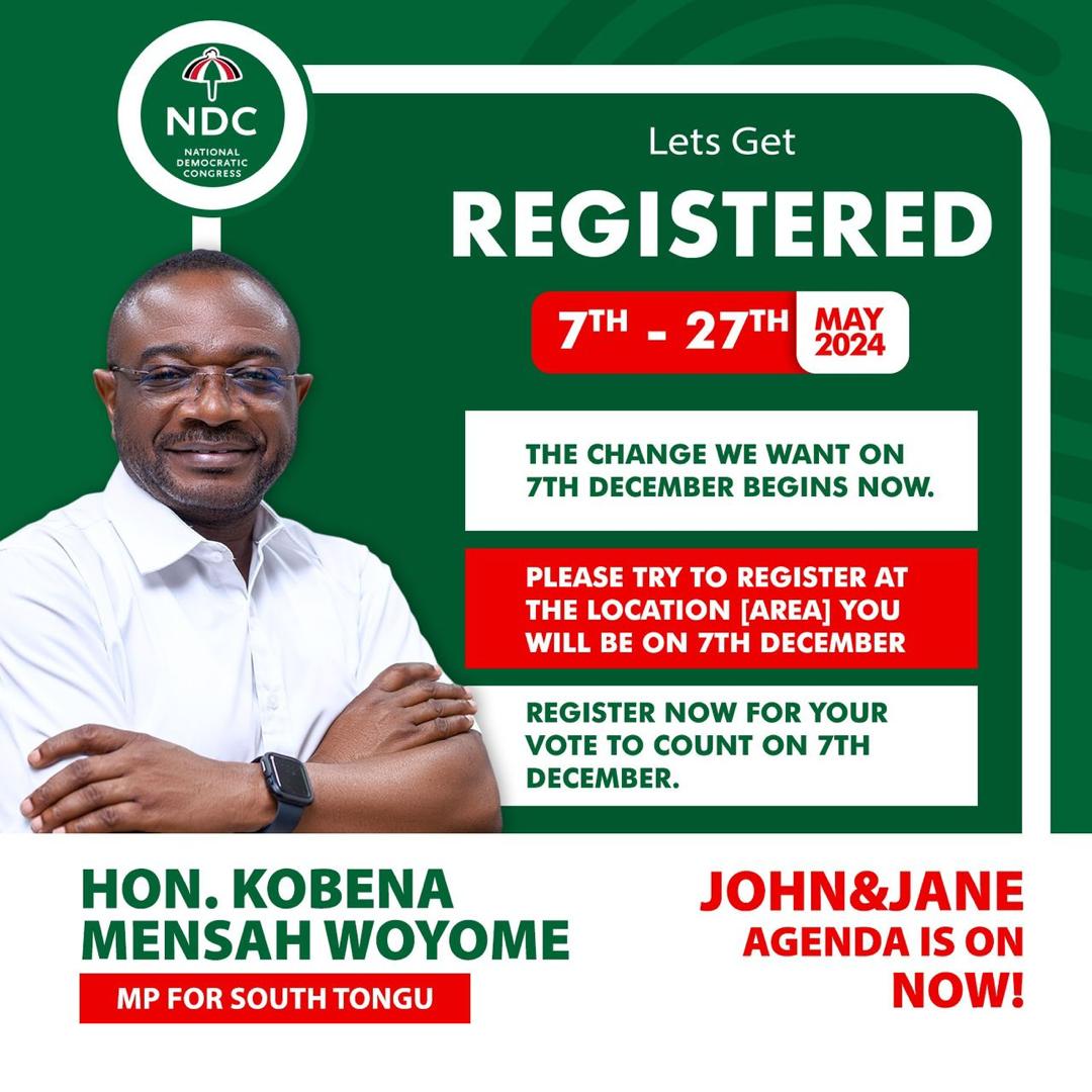 The Honorable member of parliament for South Tongu, Hon. Kebena Mensah Woyome has urged his constituents and all Ghanaians to take part in the ongoing voter registration exercise.