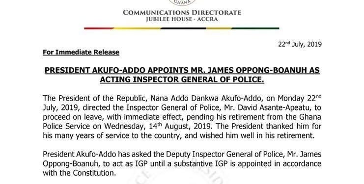 Akufo-Addo appoints James Oppong-Boanuh as acting IGP