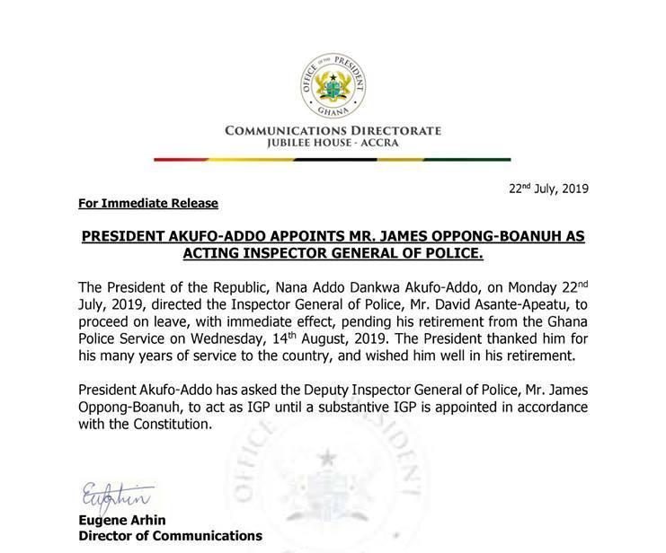 Unbelievable: IGP Asante Appiatu has been sacked