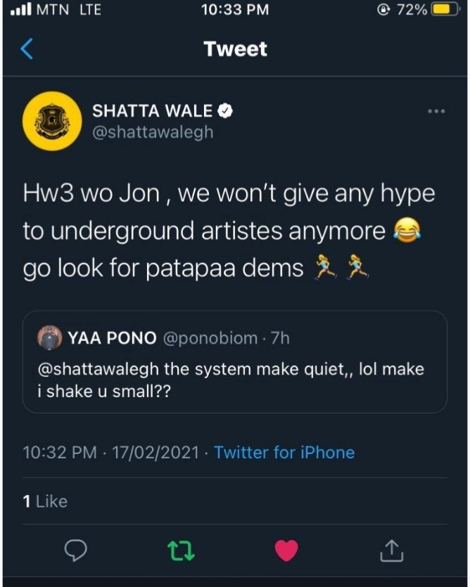 “Hw3 wo jon, we won’t give any hype to underground artistes anymore, go look for Patapaa dems.”