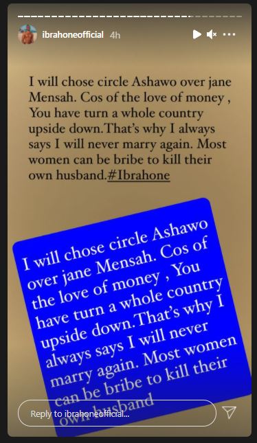 In a social media post, the loud-mouth social commentator has alleged that Jean Mensa turned the country upside down because of money, hence, his decision to pick a prostitute over her.