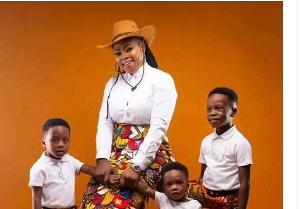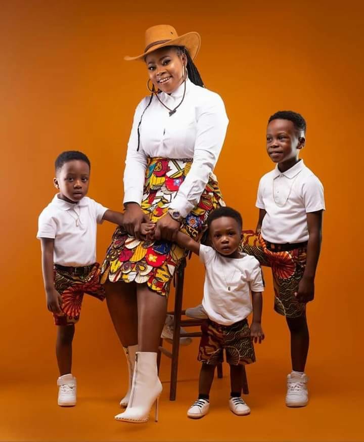 From the photo, Joyce Blessing is seen with her three strong boys looking all cute together in African print.