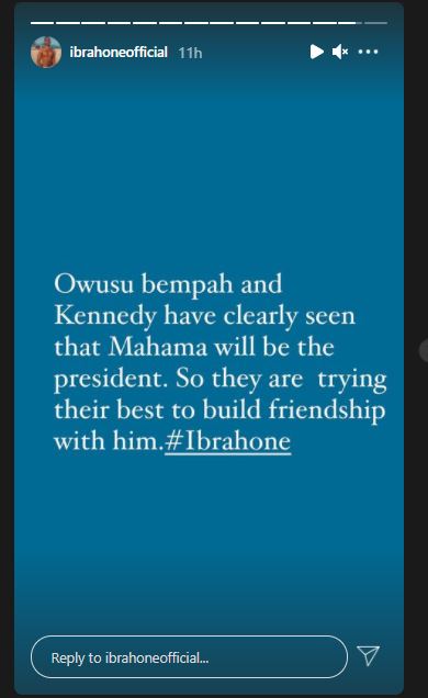 ”Owusu Bempah and Kennedy have clearly seen that Mahama will be the president. so they are trying their best to build friendship with him.#Ibrahone”
