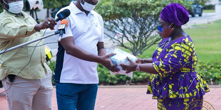 The Chief of Staff at the Office of the President, Hon. Akosua Frema Osei-Opare who was present gladly received the face masks on behalf of the president, Akufo-Addo.