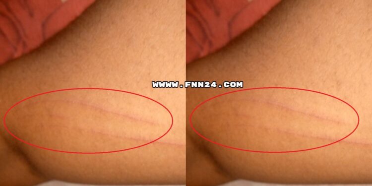 In a social media post sighted by FNN24, the lady narrated that she got up this morning to see strange marks like finger scratches on her left thigh.