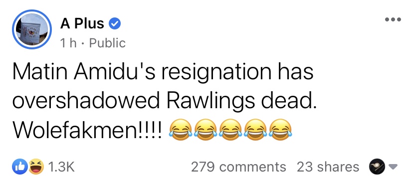 But, according to Kwame A Plus Martin Amidu’s resignation has overshadowed former President Jerry John Rawlings’ death.
