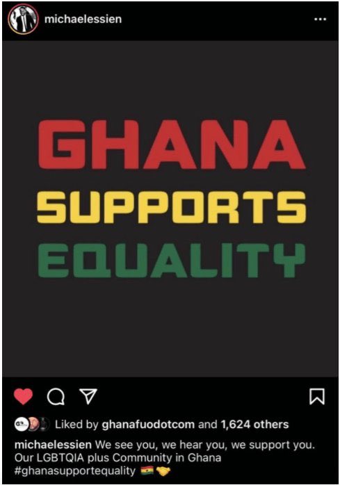 He posted “We see you, we hear you, we support you. Our LGBTIA community in Ghana,”