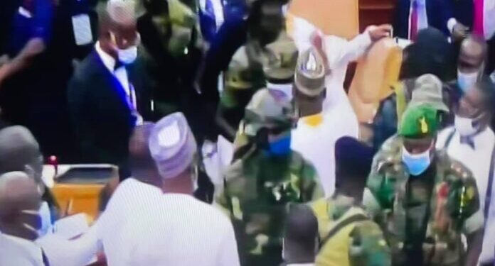 Some military men have stormed the Chamber of Parliament over some chaos and confusion over the election of the speaker of the 8th parliament of the fourth republic.