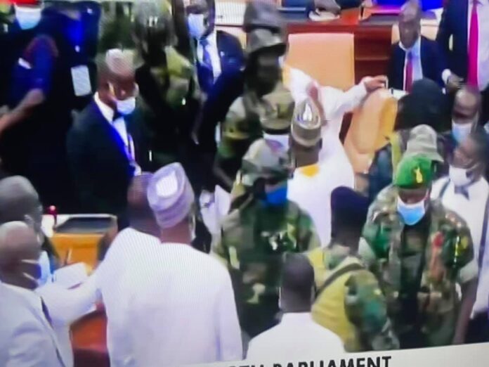 Some military men have stormed the Chamber of Parliament over some chaos and confusion over the election of the speaker of the 8th parliament of the fourth republic.