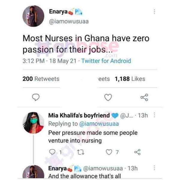 The young lady indirectly asserted that most Ghanaian nurses especially the female ones have taken up the profession because of money at the end of every month.
