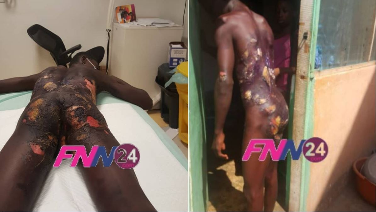 According to an eyewitness account to FNN24, the woman after pouring the hot water on the 19-year-old boy went ahead to lock him up and his other siblings in the room for days.
