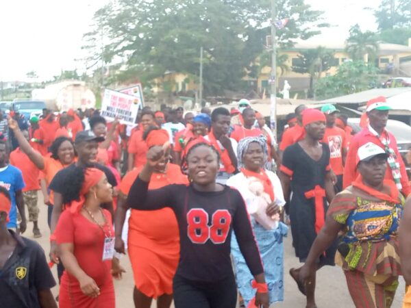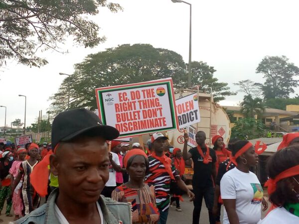 Supporters of the opposition National Democratic Congress(NDC) in Assin South, Assin Central and Assin North Constituencies in the Central Region have converged in Assin Fosu and embarked on a protest march over the 2020 election results.