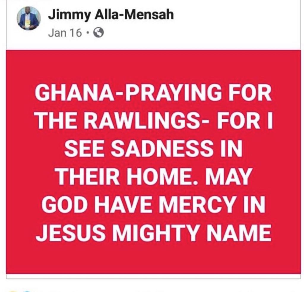 “GHANA-PRAYING FOR THE RAWLINGS-FOR I SEE SADNESS IN THEIR HOME.MAY GOD HAVE MERCY IN JESUS MIGHTY NAME”