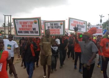 Supporters of the opposition National Democratic Congress(NDC) in Assin South, Assin Central and Assin North Constituencies in the Central Region ...