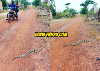 Okada Rider Stops For A Big Python To Cross The Road In Aburi (PHOTOS)