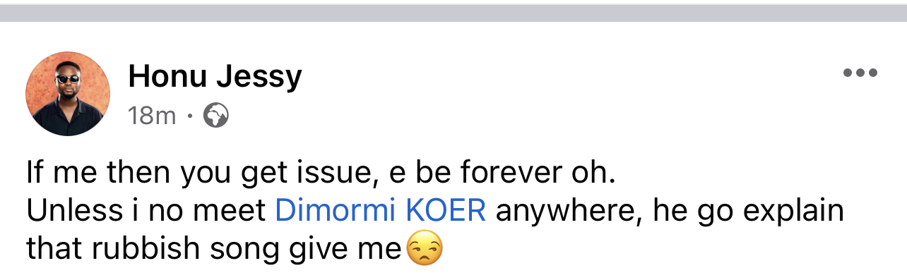 Dimormi replied him with the same beat and titled it “Yege Daniel”. The fanbase is waiting to see if Jessy will clap back or ignore him. His Facebook post suggests there is something we don’t know.