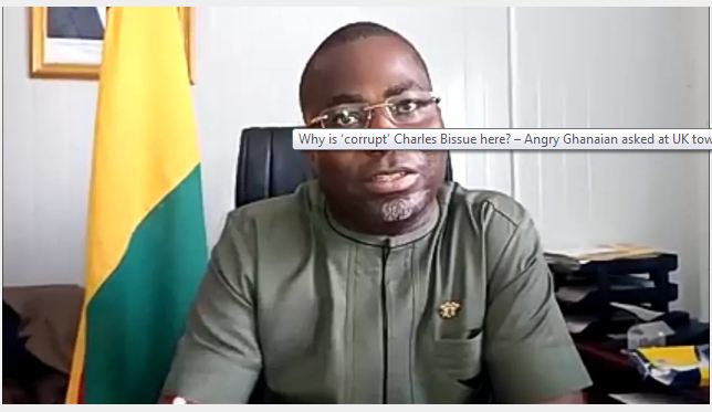 Why is ‘corrupt’ Charles Bissue here? – Angry Ghanaian asked at UK town hall