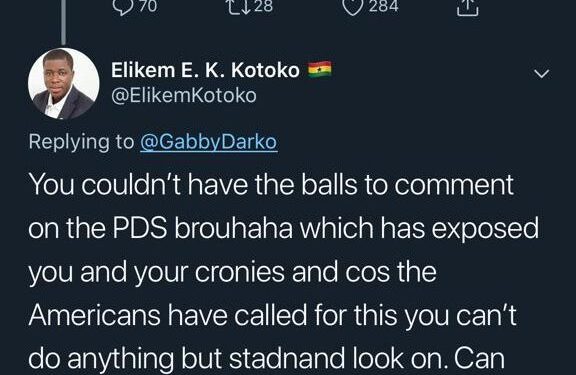 Mr Kotoko went on to accuse Mr Otchere-Darko of being part of the PDS scandal and yet has no “balls to comment on the scandal”.